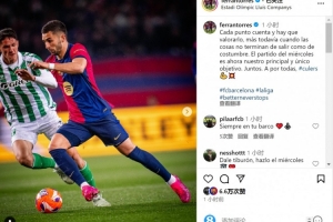 费兰社媒晒出比赛照片,并写道:“每一个积分都很重要,我们必须珍惜,尤其是情况不像往常那样顺利的时候。周三的比赛(欧冠对阵多特)现在是我们最主要,也是唯一的目标。一起加油,巴萨球迷!”
